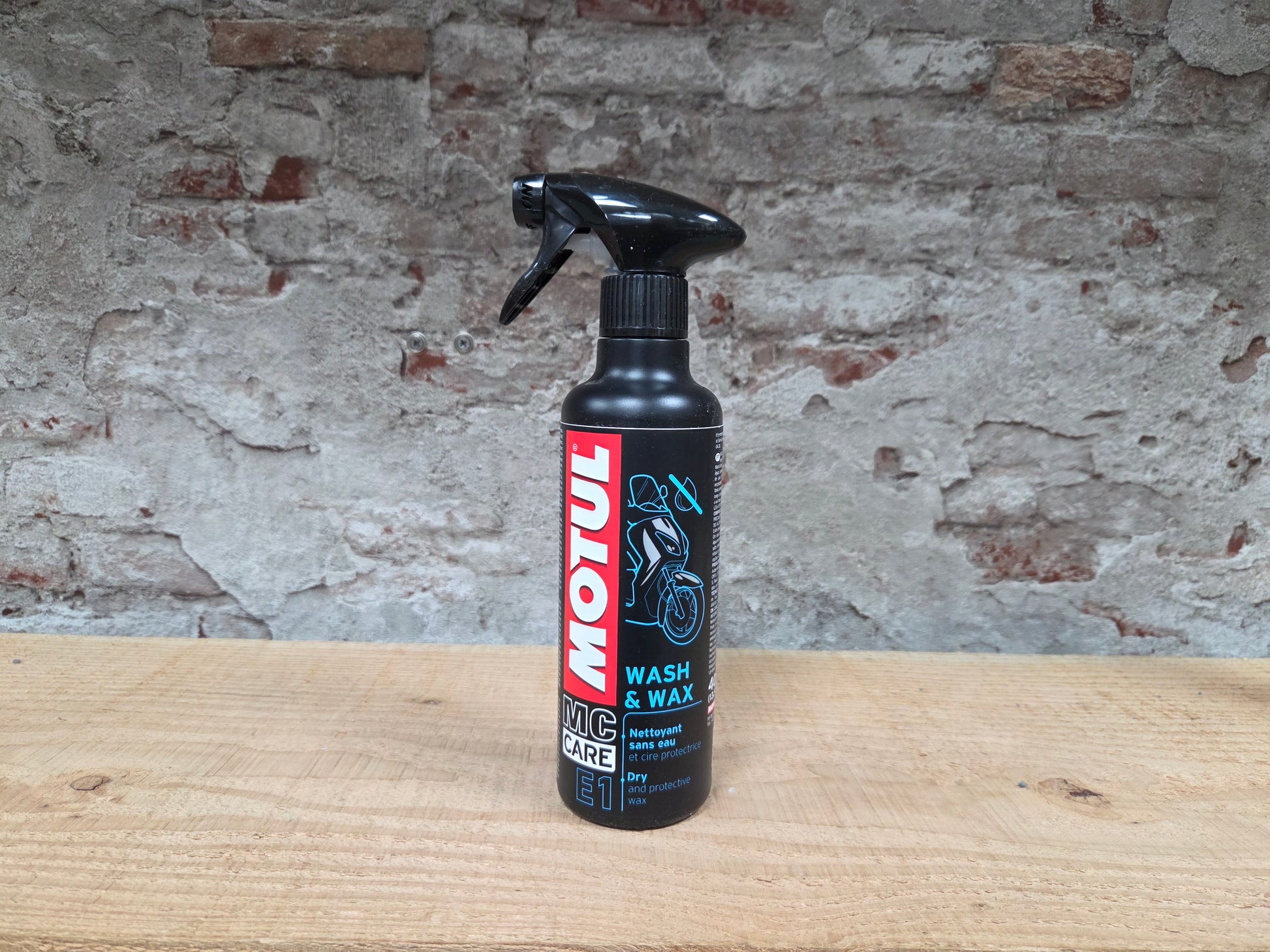Motul® MC CARE™ E1 Wash & Wax is een droge reiniger en beschermende wax: reinigt, glanst en beschermt je motor langdurig zonder te spoelen.